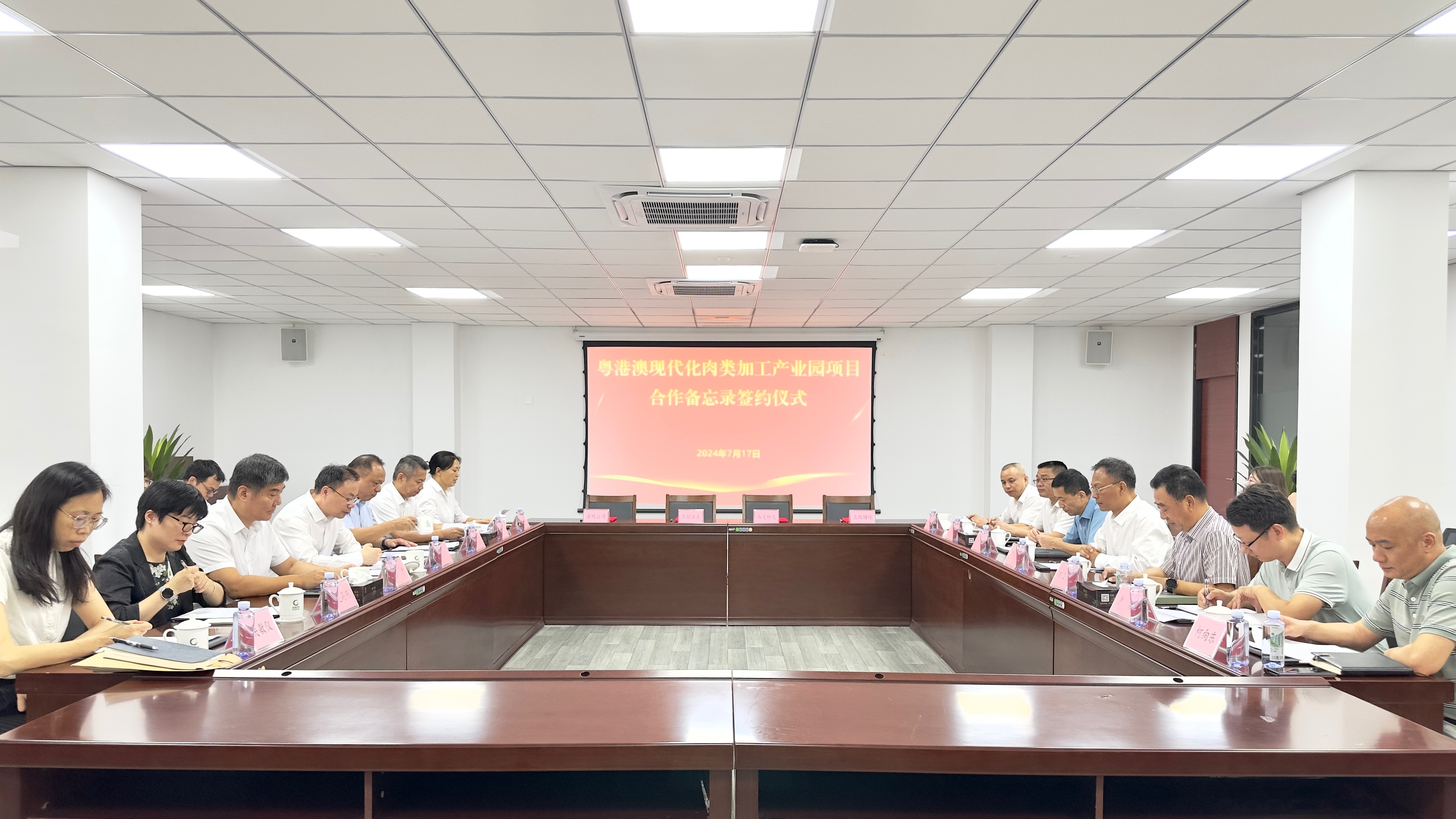 2024年7月17日下午,珠海農控集團下屬珠海食出公司與南光物流公司、金悅公司、三灶國經(jīng)公司共同在珠海農控集團會議室舉行了粵港澳現(xiàn)代化肉類加工產(chǎn)業(yè)園項目合作備忘錄簽約儀式,就合力構建珠?,F(xiàn)代化規(guī)模化屠宰加工平臺達成戰(zhàn)略合作意向。