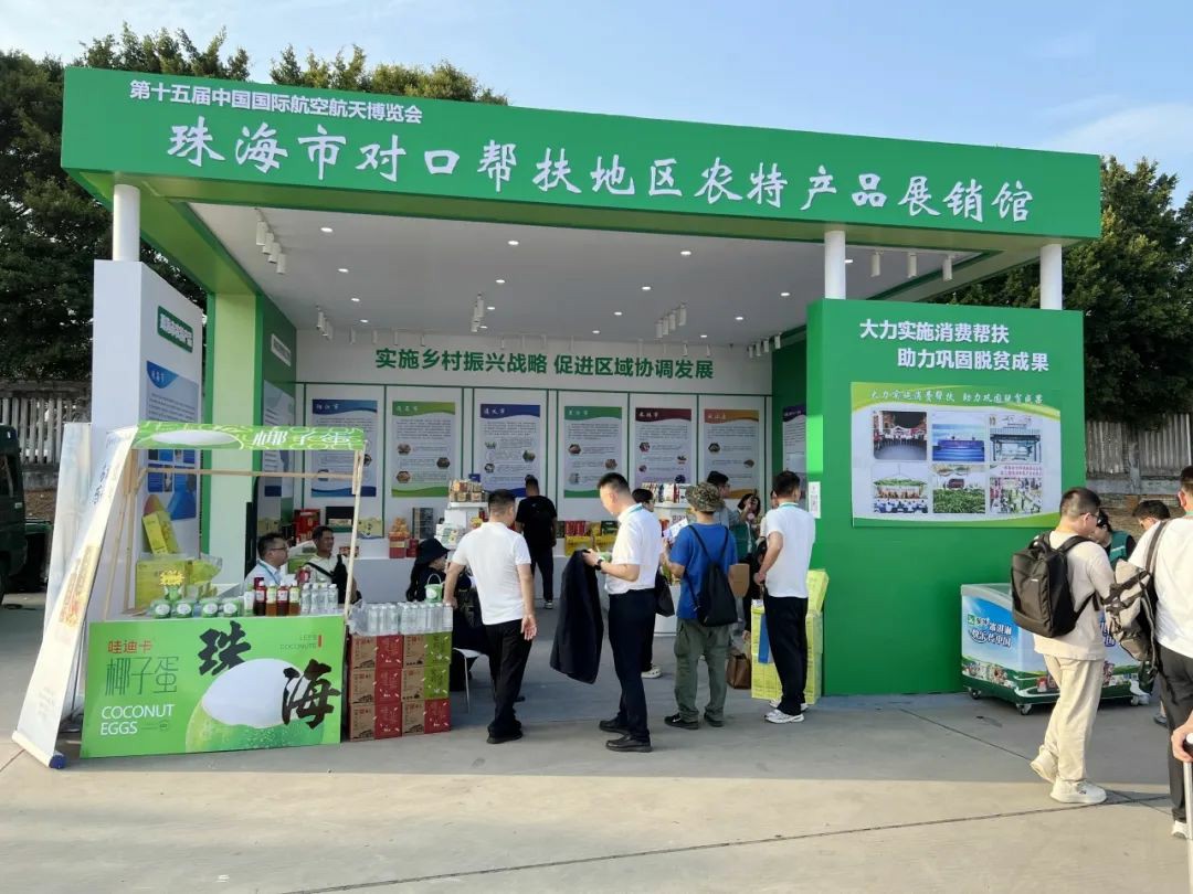 11月12日—17日,第十五屆中國國際航空航天博覽會期間,珠海市農(nóng)業(yè)農(nóng)村局、珠海農(nóng)控農(nóng)產(chǎn)品物流園有限公司聯(lián)合設(shè)立珠海市對口幫扶地區(qū)農(nóng)特產(chǎn)品展銷館,精心展出200余種農(nóng)特優(yōu)產(chǎn)品,向全球來客展現(xiàn)珠海在大力實施消費幫扶、助力鄉(xiāng)村振興工作中取得的豐碩成果。
