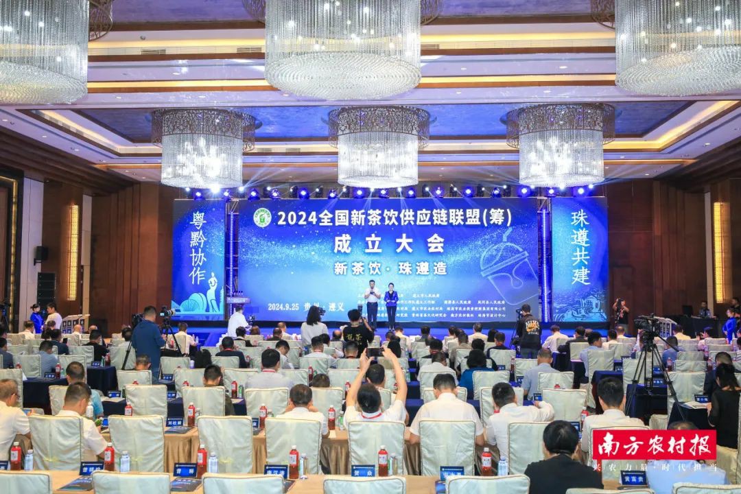 拓展茶飲新賽道,深挖消費新潛力,打造協(xié)作新標桿。9月25日,2024全國新茶飲供應鏈聯(lián)盟(籌)成立大會在遵義市湄潭縣舉行。會上,珠遵新茶飲研究院暨戰(zhàn)略咨詢專家委員會、全國新茶飲供應鏈聯(lián)盟(籌)揭牌,標志著珠遵兩地共同打造的新茶飲供應鏈產(chǎn)業(yè)新生態(tài)邁出關(guān)鍵步伐,助力全國新茶飲供應鏈提質(zhì)升級和新茶飲產(chǎn)業(yè)高質(zhì)量發(fā)展。中國工程院院士、湖南師范大學校長、湖南農(nóng)業(yè)大學學術(shù)委員會主任劉仲華,貴州省人大常委會原副主任、貴州省茶文化研究會會長傅傳耀,貴州省農(nóng)業(yè)農(nóng)村廳二級巡視員楊紹武,珠海市副市長黃振球,遵義市副市長吳起,湖南農(nóng)業(yè)大學副校長謝方平,遵義市湄潭縣委書記、縣人民政府縣長游海燕,珠海農(nóng)控集團黨委書記、董事長李鴻斌出席活動。